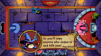 (every round your mouse and keyboard inputs are recorded, and played mirrored to you on repeat, if the pink wizard is killed. if the player is killed the last recording is played)